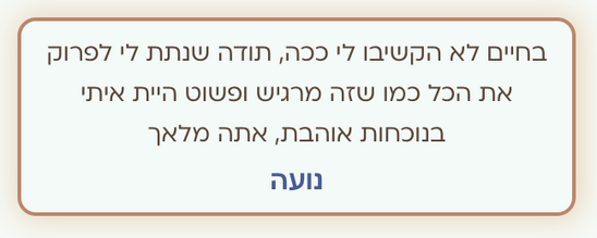 והיום - אני בזוגיות מדהימה, בחיבור מחודש לעולם הרגשי שלי ובאמונה עמוקה במסע שלנו פה.